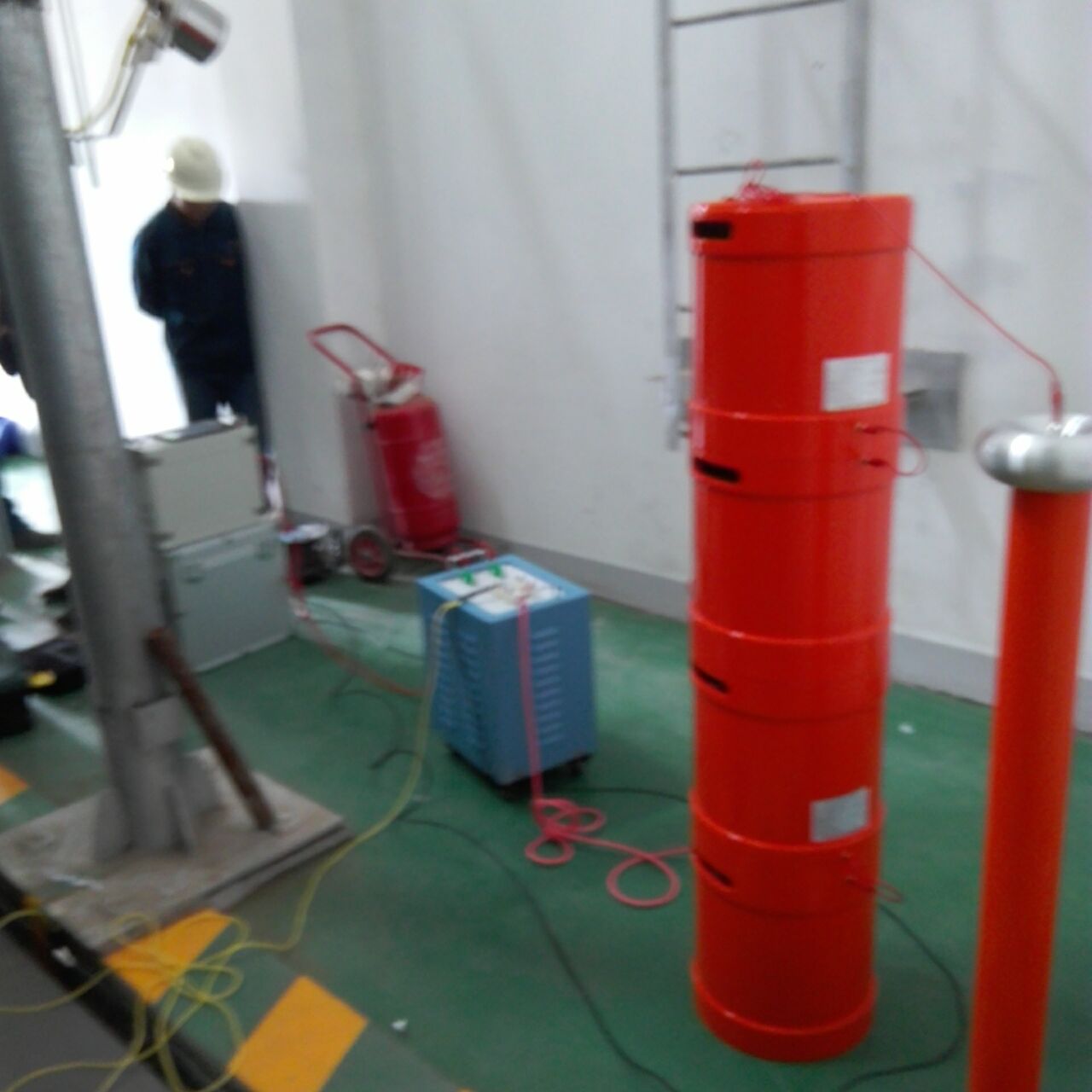此次培訓(xùn)的主要設(shè)備是我公司的優(yōu)質(zhì)產(chǎn)品:YTC850-108/108變頻串聯(lián)諧振試驗裝置,該裝置主要針對10kV、35kV電纜, 35kV及以下電壓等級開關(guān)、GIS、互感器、斷路器等變電站設(shè)備的交流耐壓試驗設(shè)計制造。設(shè)備所需電源容量大大減小。串聯(lián)諧振電源是利用諧振電抗器和被試品電容諧振產(chǎn)生高電壓和大電流的,在整個系統(tǒng)中,電源只需要提供系統(tǒng)中有功消耗的部分。設(shè)備的重量和體積大大減少,改善輸出電壓的波形。防止大的短路電流燒傷故障點等優(yōu)質(zhì)特點。
