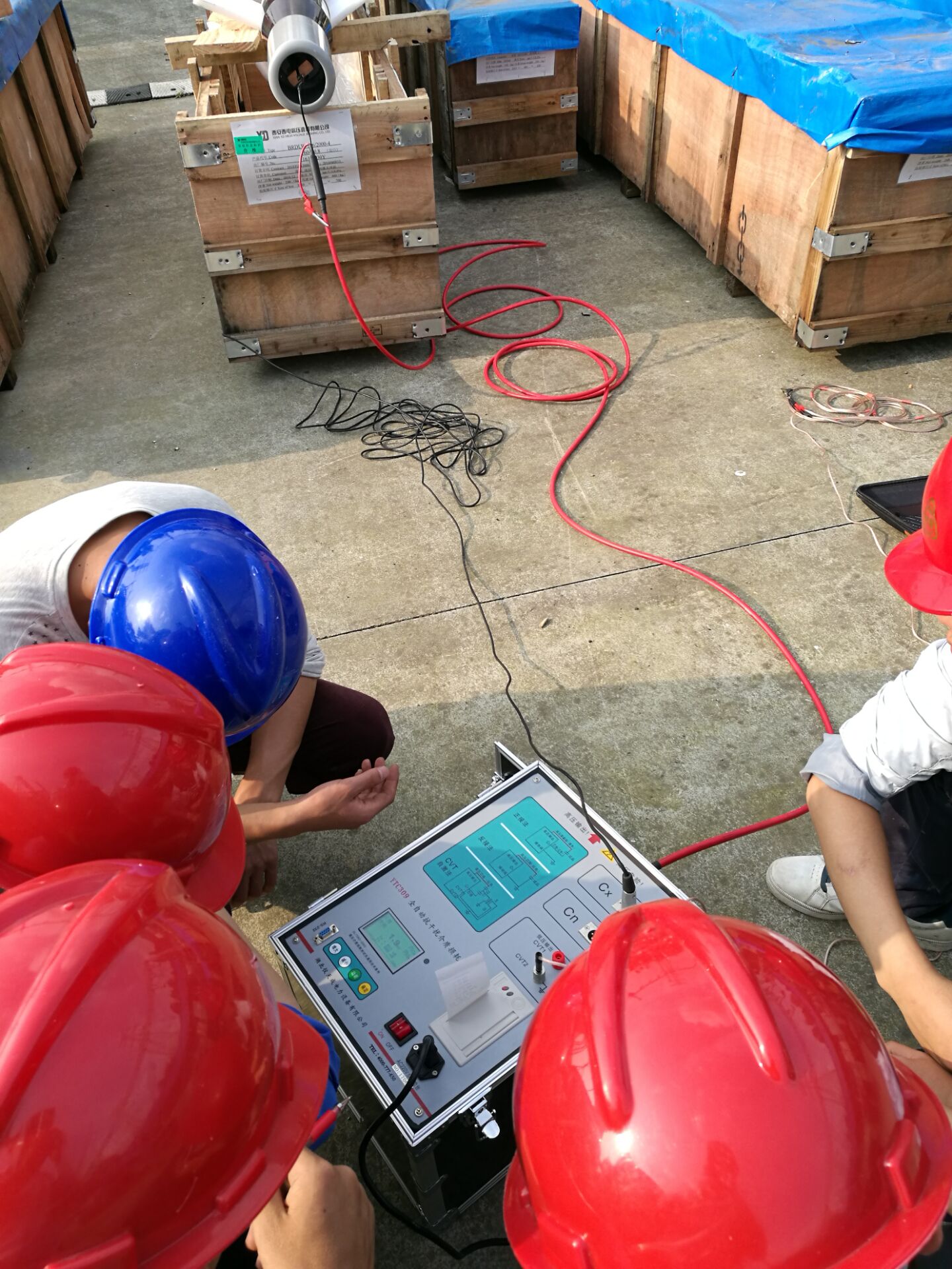 在現(xiàn)場,李工首先對設備進行了簡單的檢查看看設備是否有損壞,之后開始了對設備的培訓。此次培訓的設備和內容很多。李工對各項設備的使用,接線方法進行了實地操作和詳細的講解,并對客戶提出疑問的地方,現(xiàn)場給予細心,準確的解答。客戶理解能力比較強,在設備培訓過程中有的同事就已經基本掌握了設備的操作,隨后,又與客戶一起到現(xiàn)場對被試品進行了試驗。