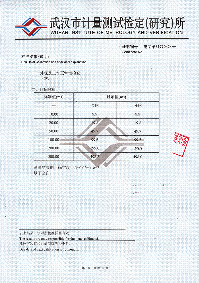 3、彈 跳:每斷口的合閘彈跳時間,彈跳次數,彈跳過程,彈跳波形;每斷口的分閘反彈幅值。