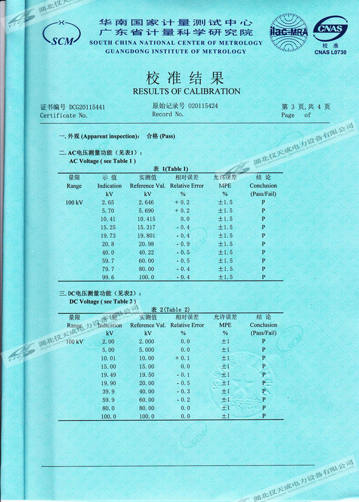 轉(zhuǎn)載:"YTC8107-100電容分壓器高壓測量系統(tǒng)的資質(zhì)證書" 請注明來源于儀天成電力。 更多技術(shù)問題請致電儀天成電力客戶服務(wù):027-87876585,技術(shù)部專線:027-87876585,在線客服:719388481
